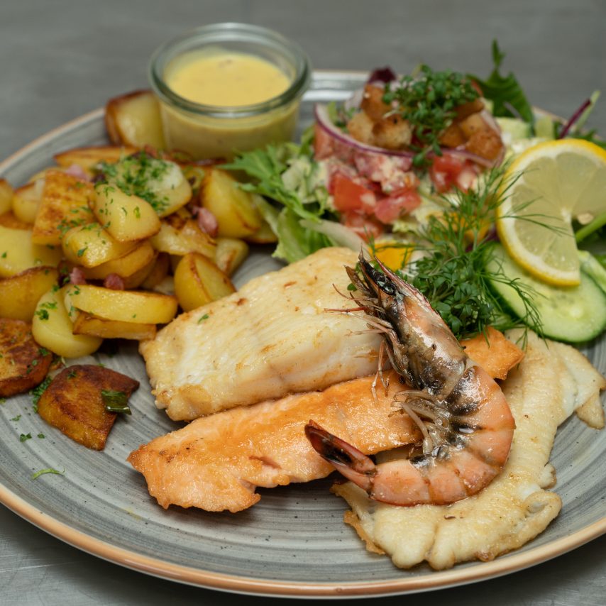 In Verbindung mit unserer individuellen Küche, servieren wir Ihnen unseren frischen Fisch mit Beilagen und hausgemachten Saucen, so geschmacksintensiv wie nordisch.